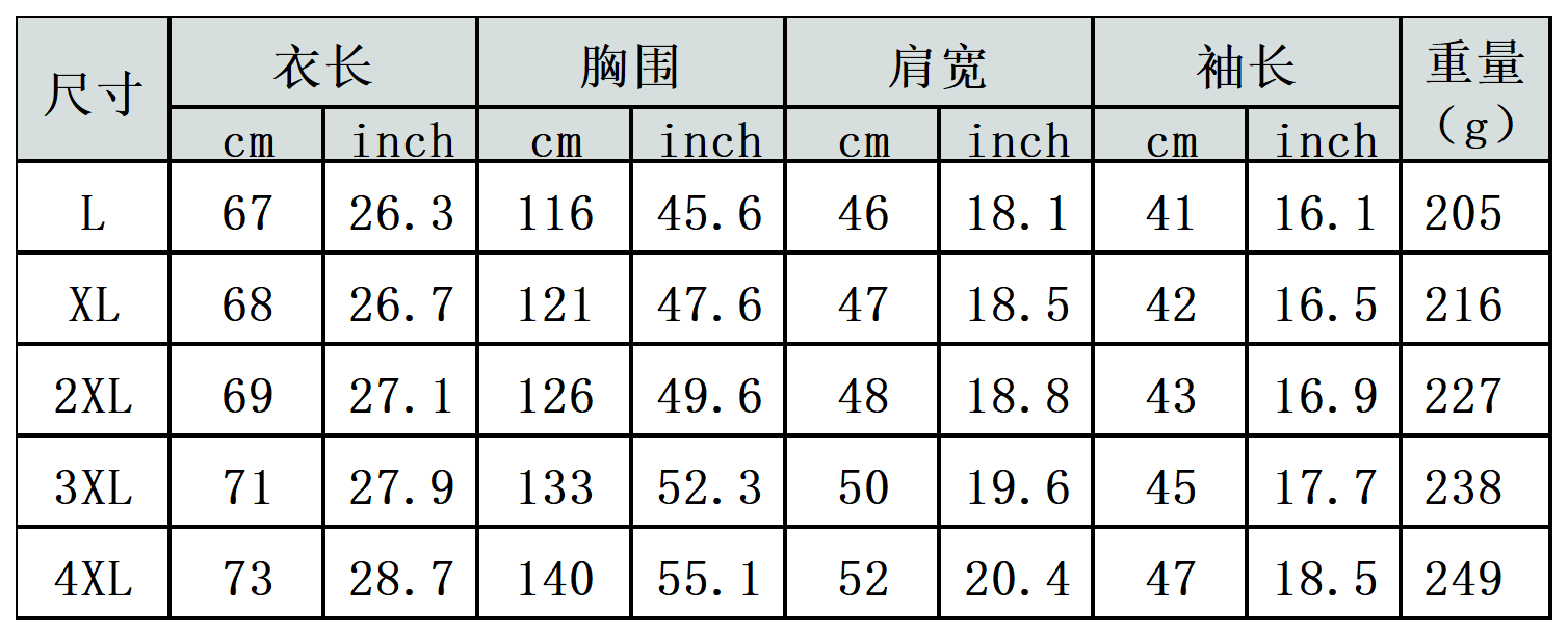 【特别说明】此尺码数据在衣服平铺下测量所得,因测量方法不同,误差在1-3cm内的属于正常现象