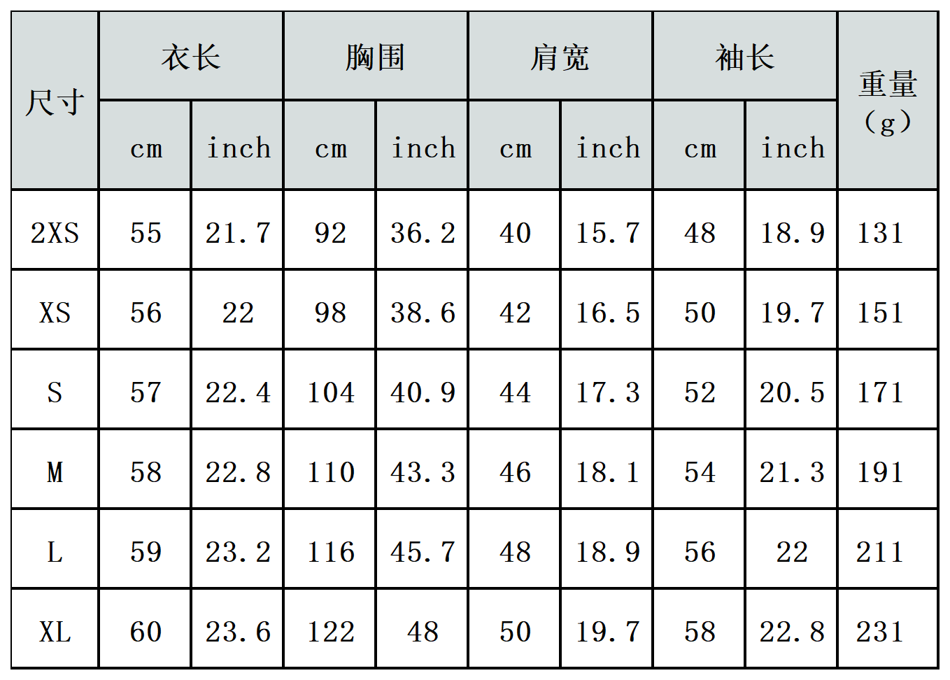 【特别说明】此尺码数据在衣服平铺下测量所得,因测量方法不同,误差在1-3cm内的属于正常现象