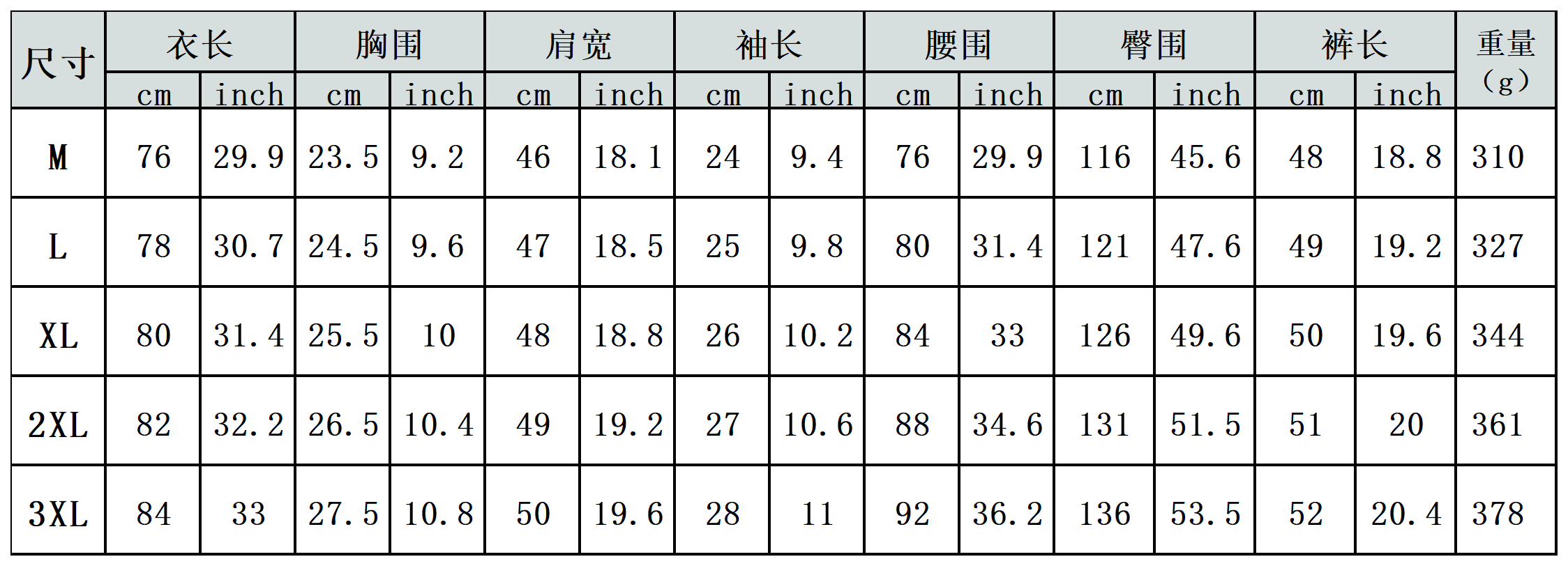 【特别说明】此尺码数据在衣服平铺下测量所得,因测量方法不同,误差在1-3cm内的属于正常现象