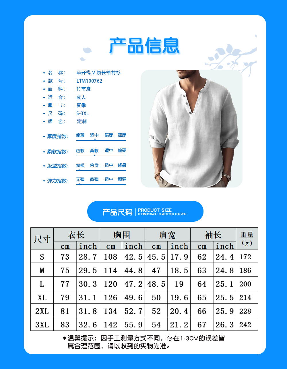【适用场景】适合居家,适合春季、夏季和秋季穿着。
