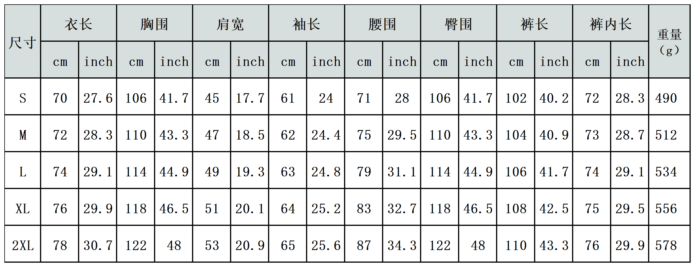 【特别说明】此尺码数据在衣服平铺下测量所得,因测量方法不同,误差在1-3cm内的属于正常现象