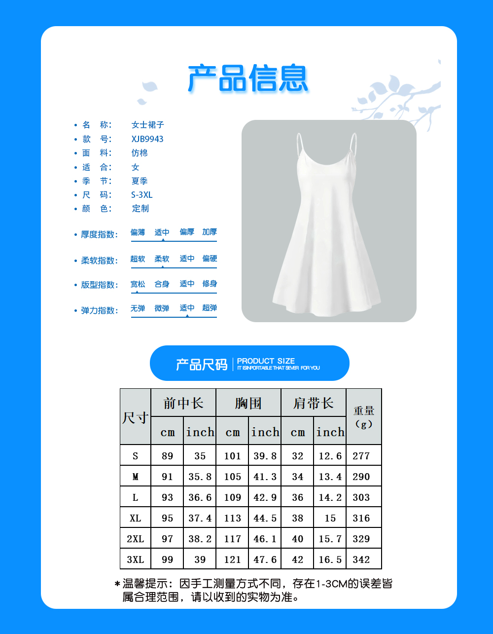 中文名称:女士裙子英文名称:产品货号:XJB9943生产工艺: 满印印花产品材质:仿棉