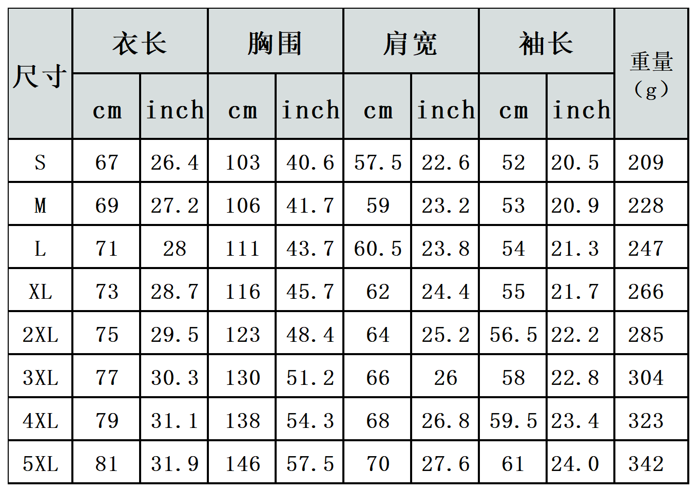【特别说明】此尺码数据在衣服平铺下测量所得,因测量方法不同,误差在1-3cm内的属于正常现象