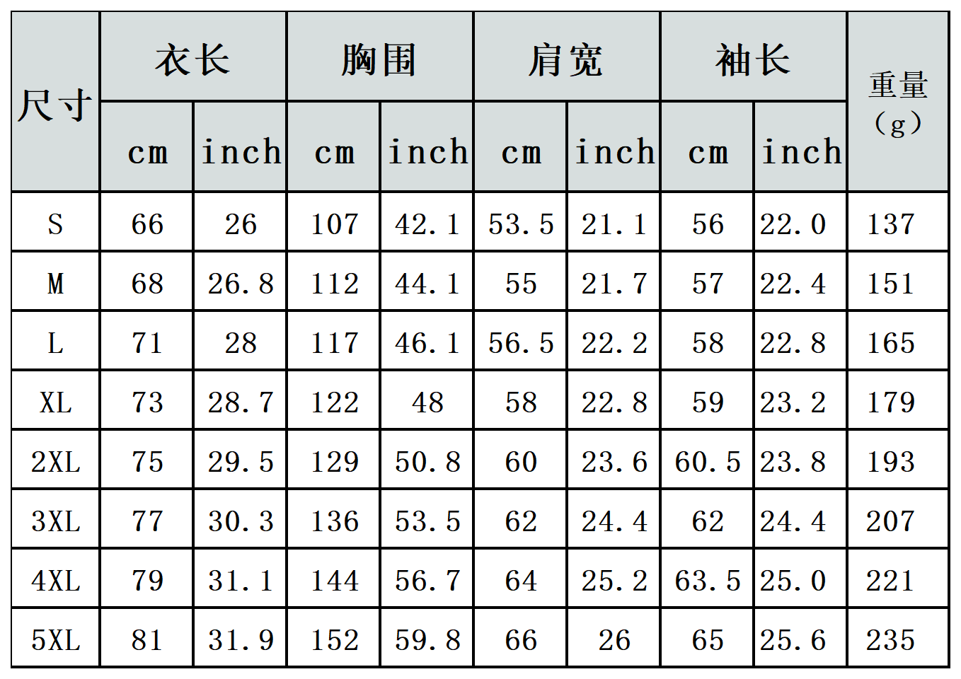 【特别说明】此尺码数据在衣服平铺下测量所得,因测量方法不同,误差在1-3cm内的属于正常现象