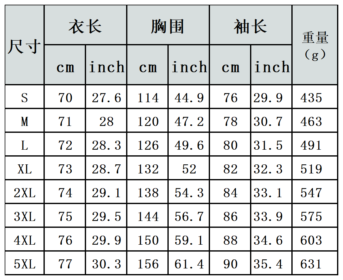 【特别说明】此尺码数据在衣服平铺下测量所得,因测量方法不同,误差在1-3cm内的属于正常现象