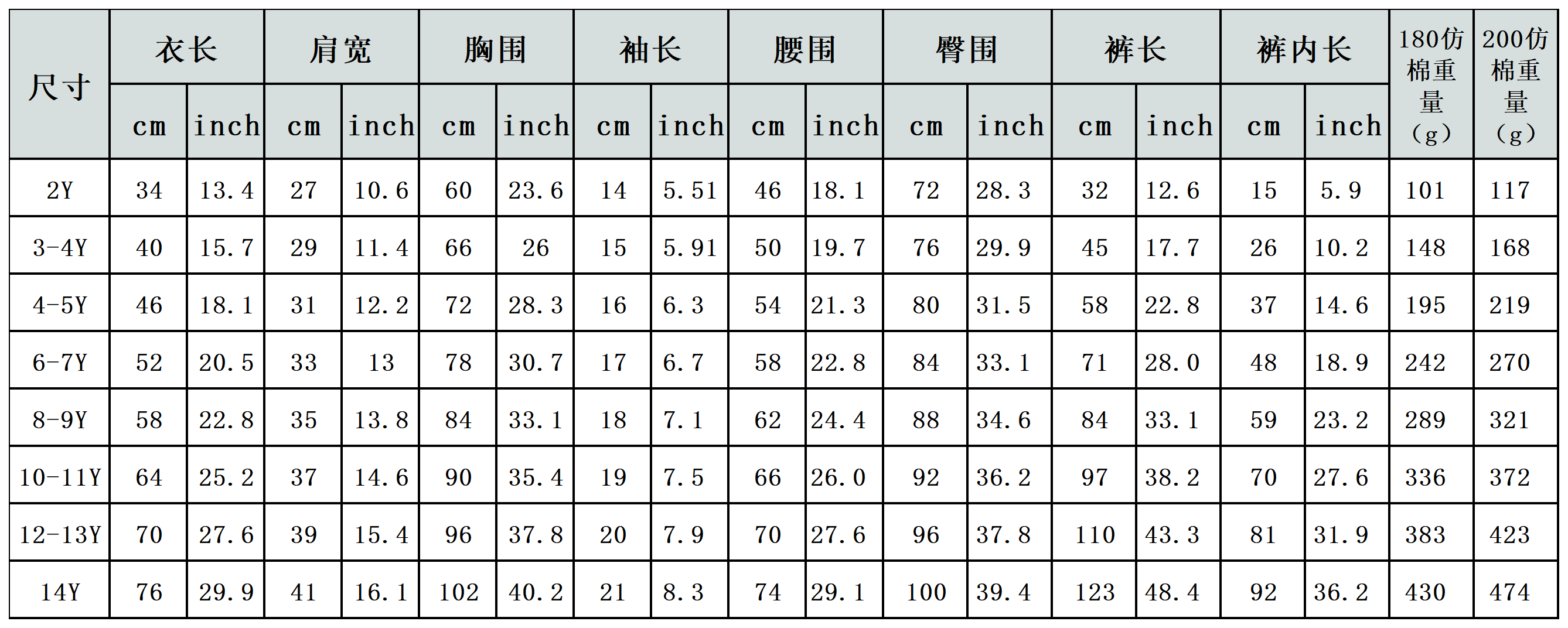 【特别说明】此尺码数据在衣服平铺下测量所得,因测量方法不同,误差在1-3cm内的属于正常现象