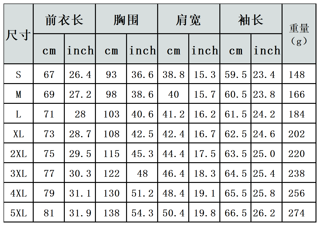 【特别说明】此尺码数据在衣服平铺下测量所得,因测量方法不同,误差在1-3cm内的属于正常现象