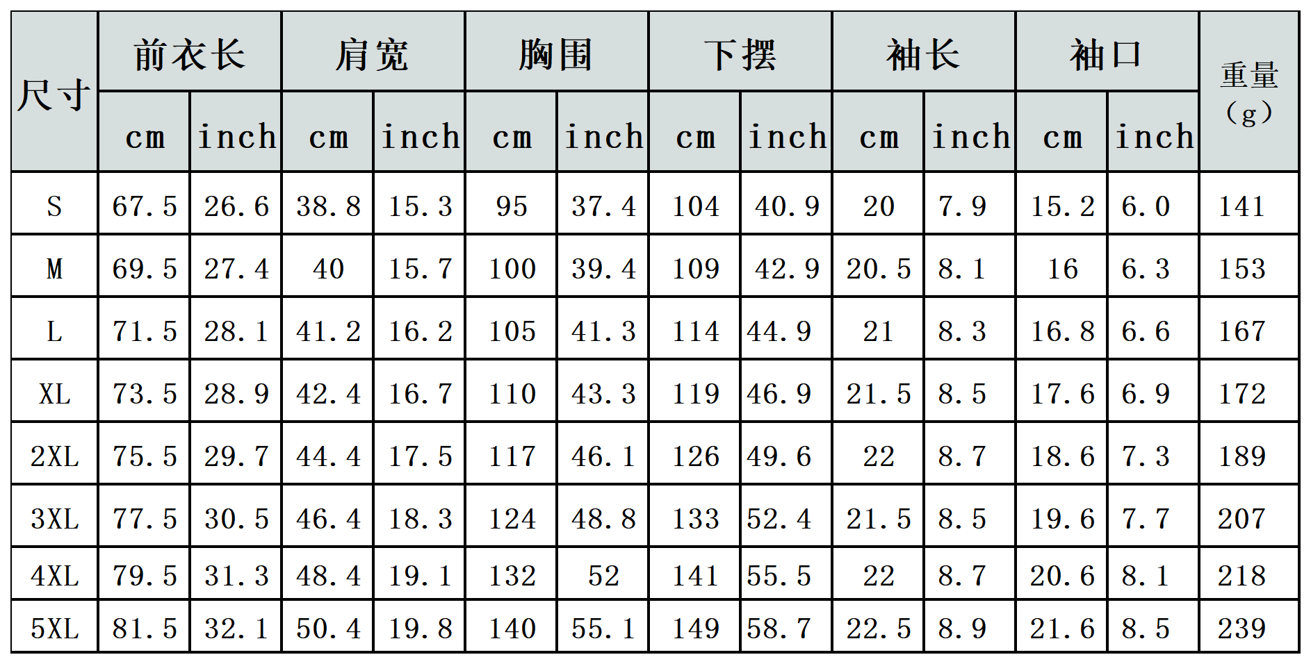【特别说明】此尺码数据在衣服平铺下测量所得,因测量方法不同,误差在1-3cm内的属于正常现象