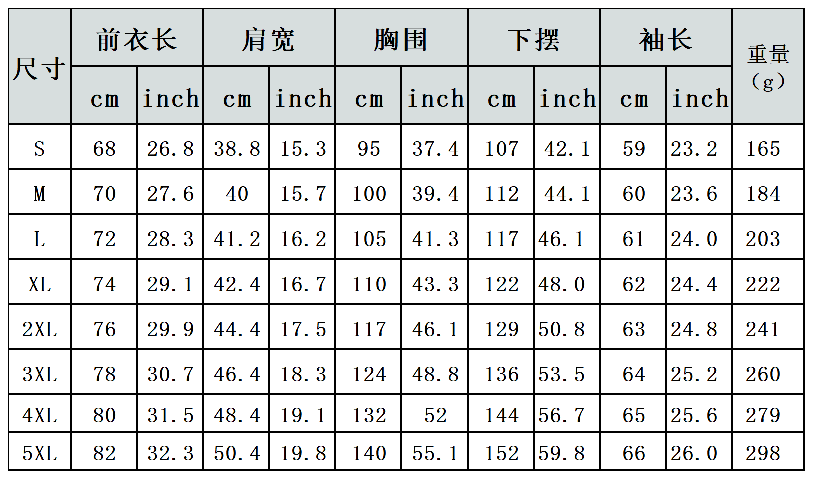 【特别说明】此尺码数据在衣服平铺下测量所得,因测量方法不同,误差在1-3cm内的属于正常现象