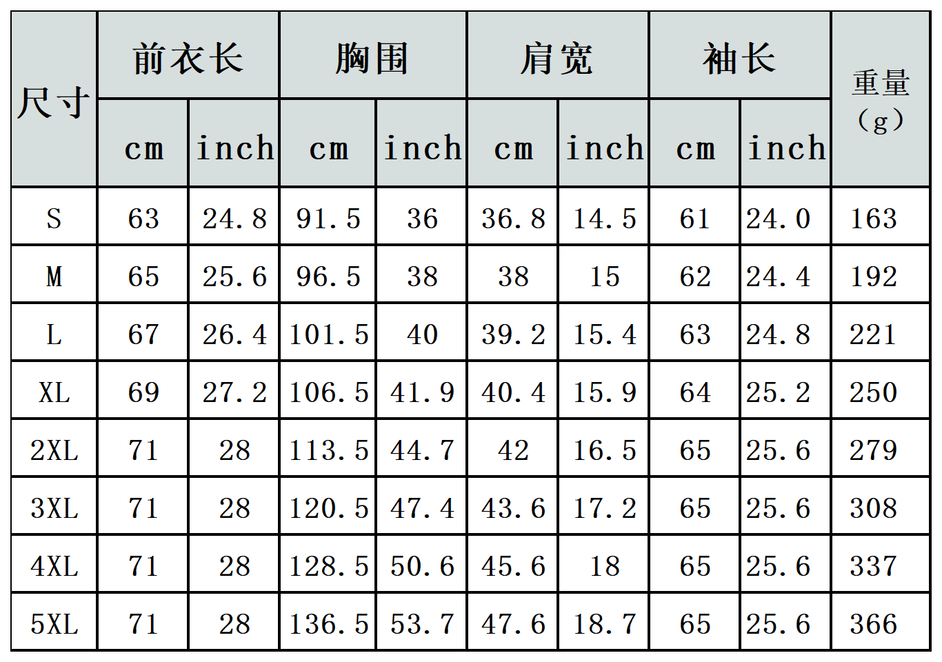 【特别说明】此尺码数据在衣服平铺下测量所得,因测量方法不同,误差在1-3cm内的属于正常现象。