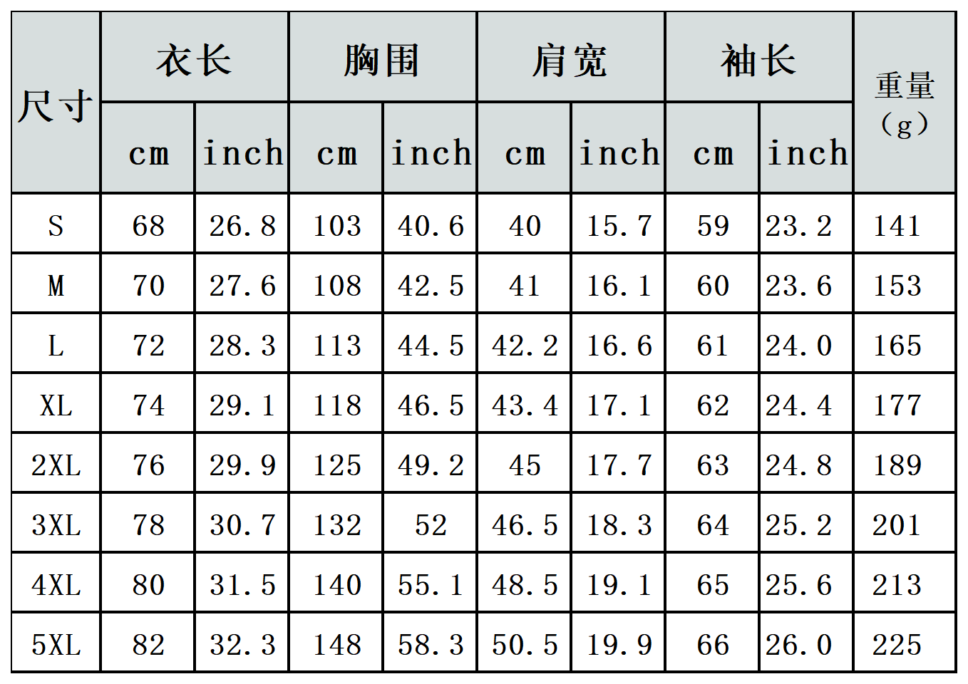【特别说明】此尺码数据在衣服平铺下测量所得,因测量方法不同,误差在1-3cm内的属于正常现象