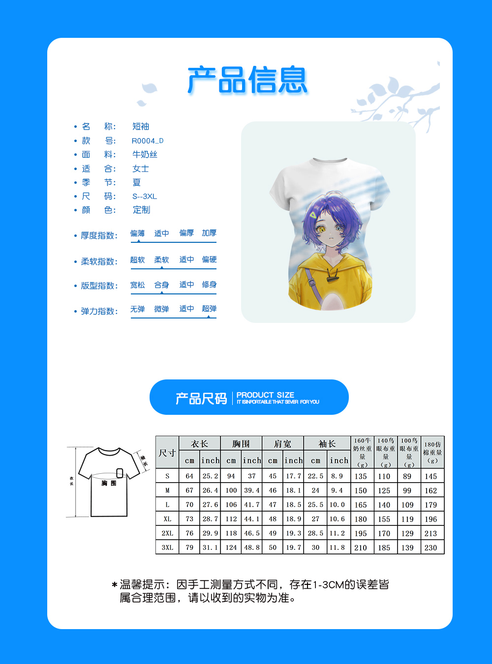 【特别说明】此尺码数据在衣服平铺下测量所得,因测量方法不同,误差在1-3cm内的属于正常现象