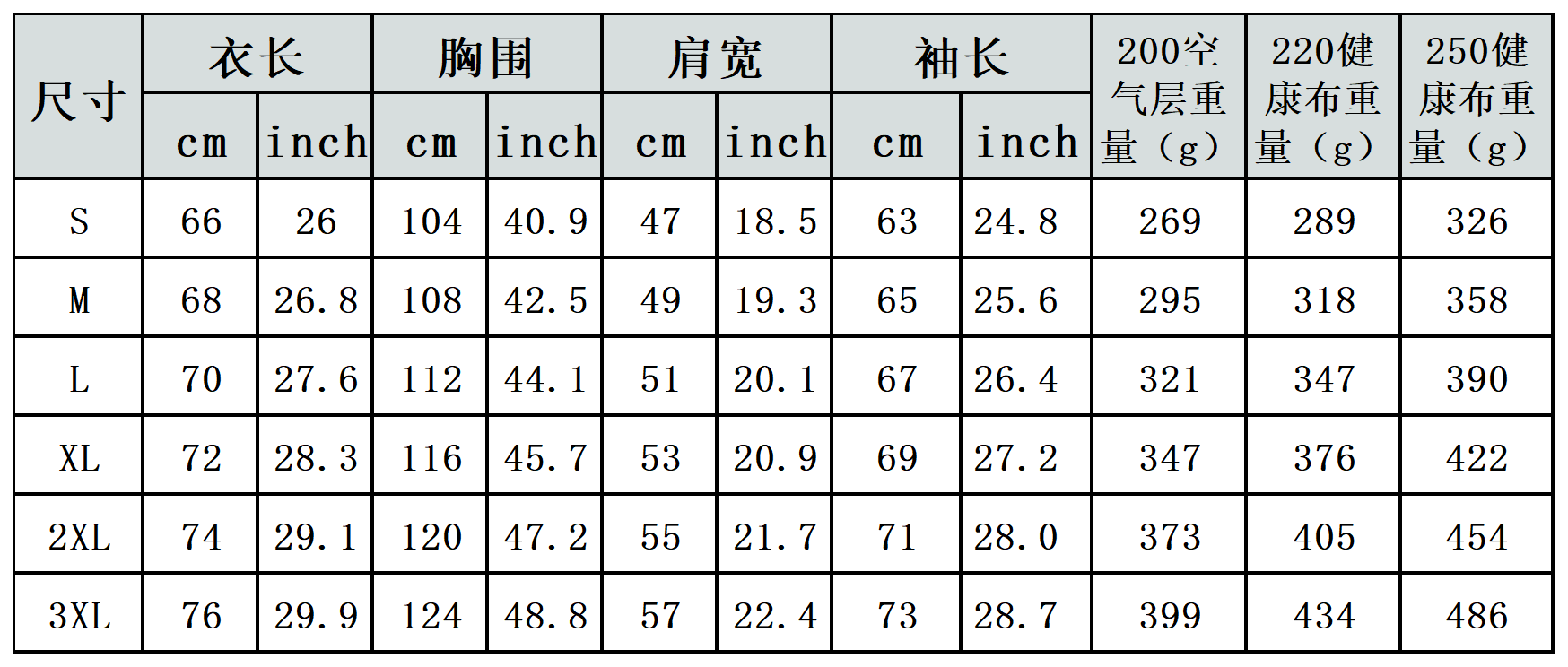 【特别说明】此尺码数据在衣服平铺下测量所得,因测量方法不同,误差在1-3cm内的属于正常现象