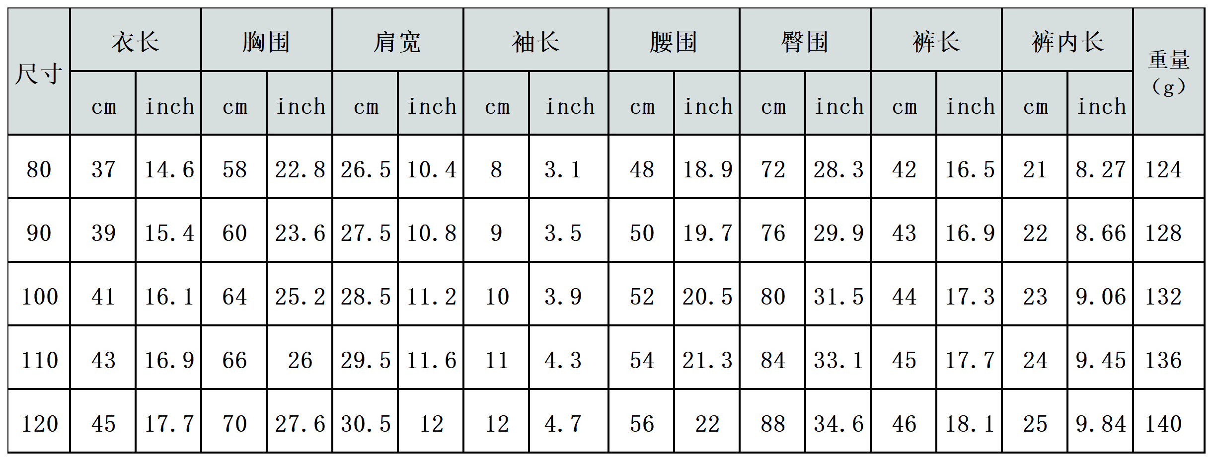 【特别说明】此尺码数据在衣服平铺下测量所得,因测量方法不同,误差在1-3cm内的属于正常现象