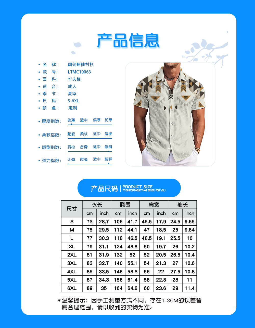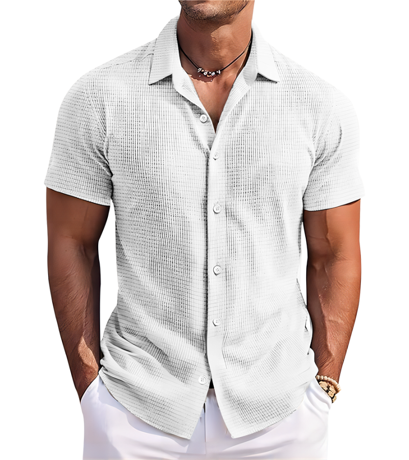 中文名称:男华夫格翻领短袖衬衫英文名称:产品货号:LTMC10063生产工艺: 满印印花产品材质:华夫格