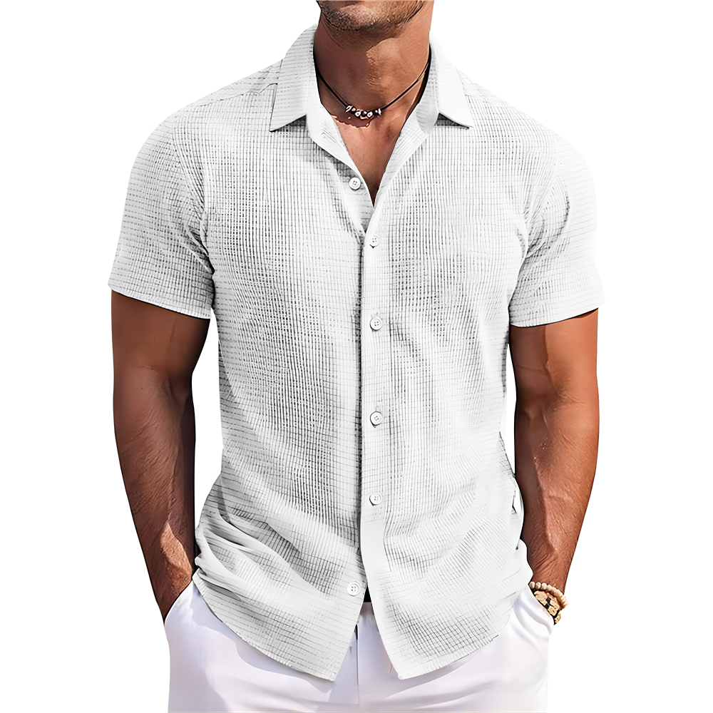 男华夫格翻领短袖衬衫-LTMC10063