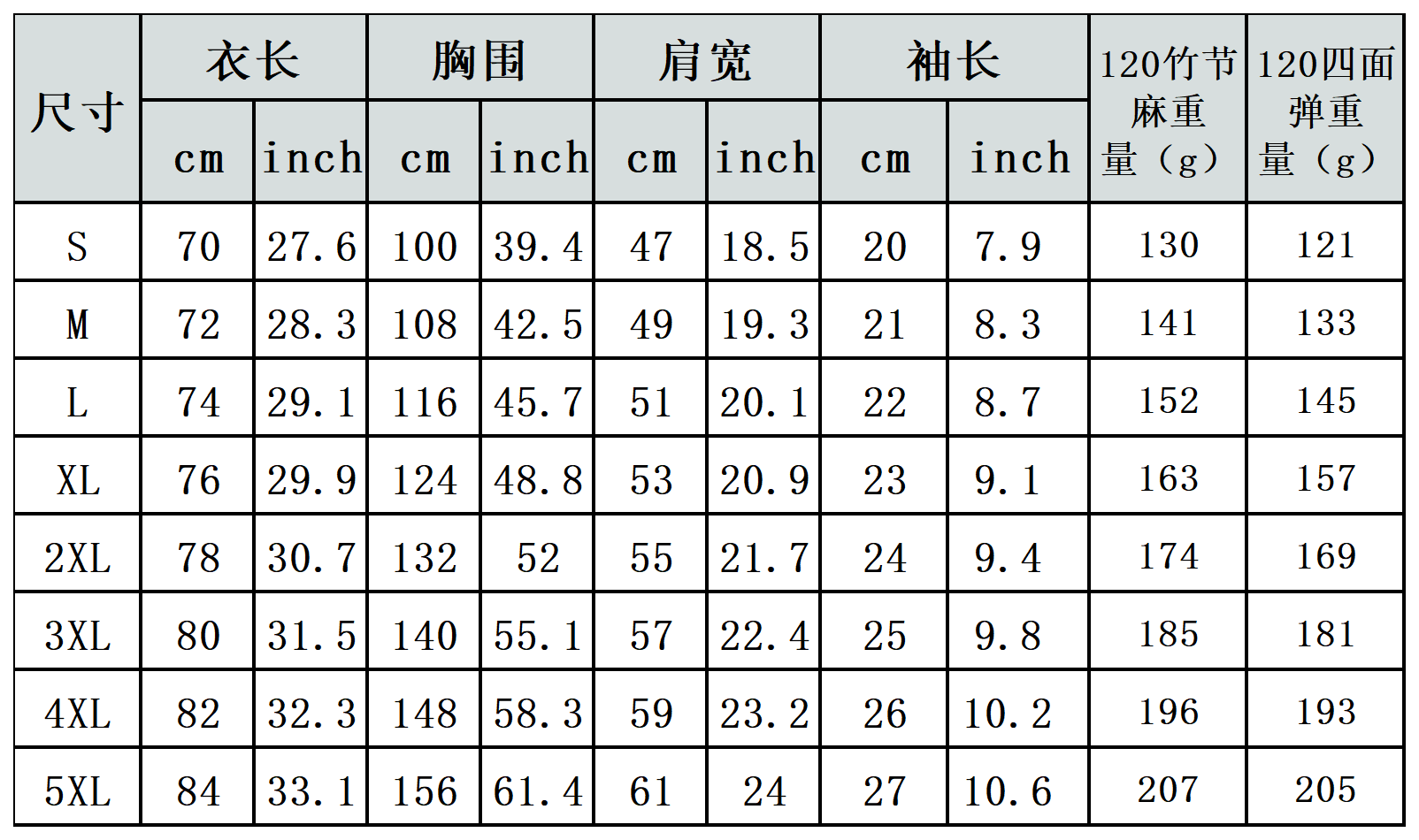 【特别说明】此尺码数据在衣服平铺下测量所得,因测量方法不同,误差在1-3cm内的属于正常现象