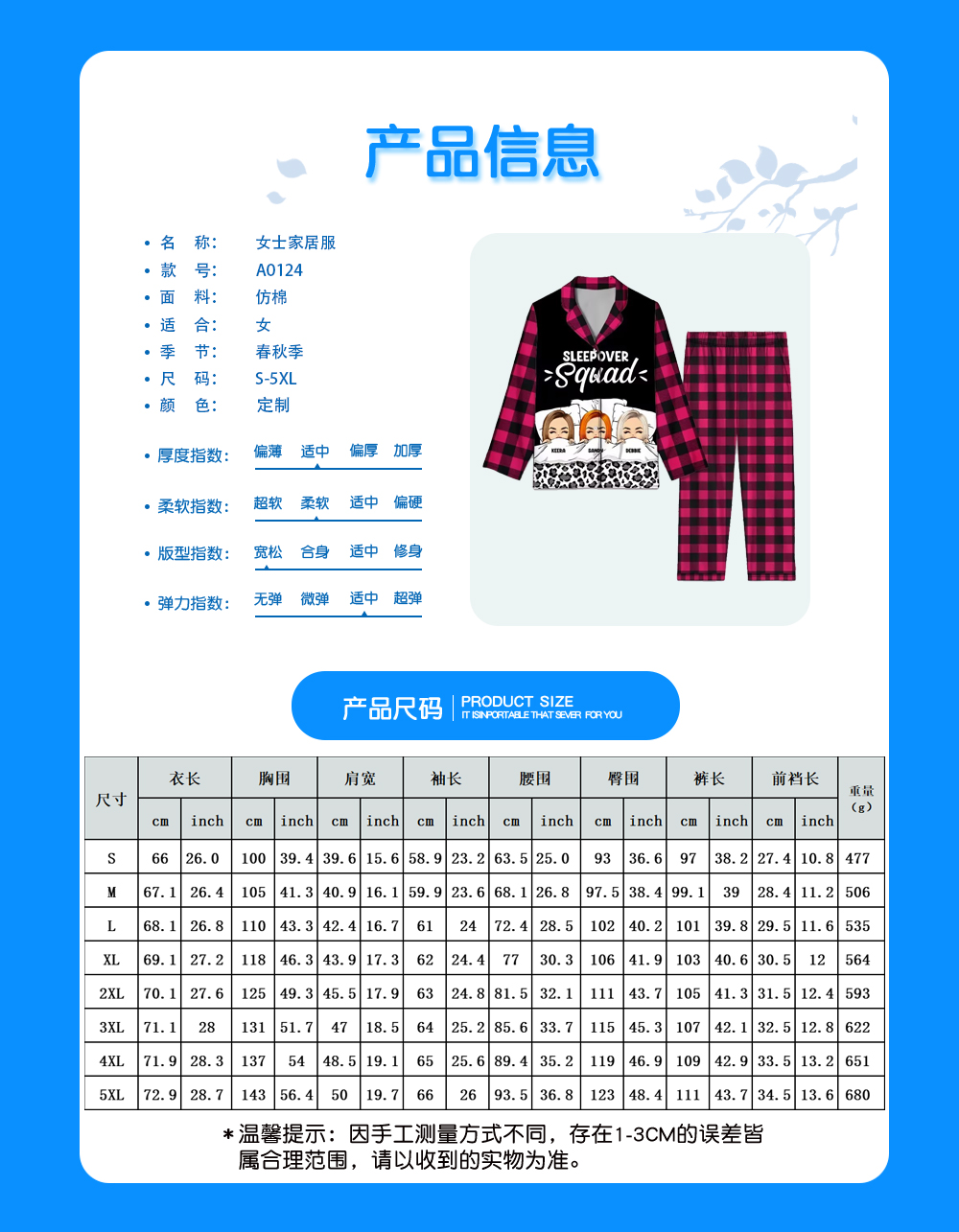 中文名称:女士家居服英文名称:产品货号:A0124生产工艺: 满印印花产品材质: 仿棉