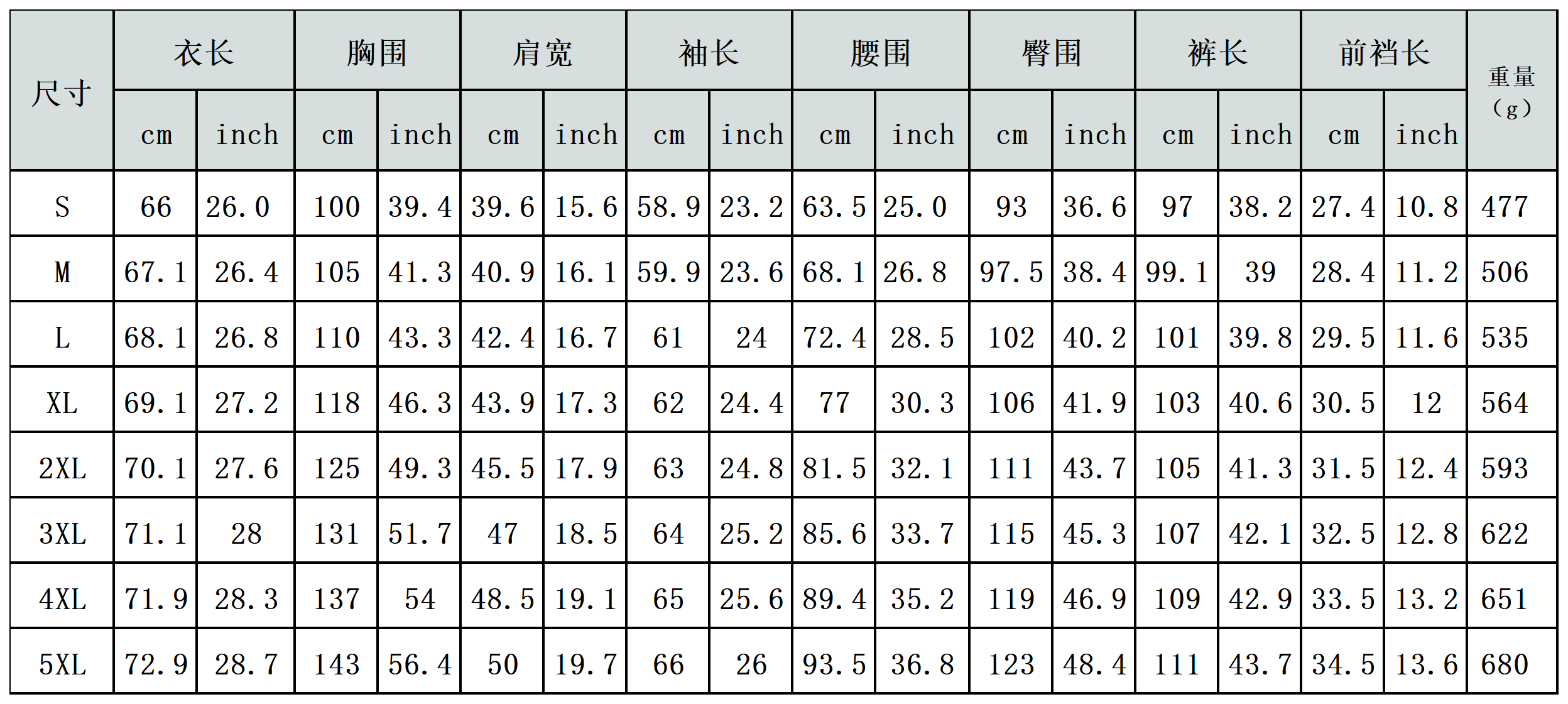 【特别说明】此尺码数据在衣服平铺下测量所得,因测量方法不同,误差在1-3cm内的属于正常现象