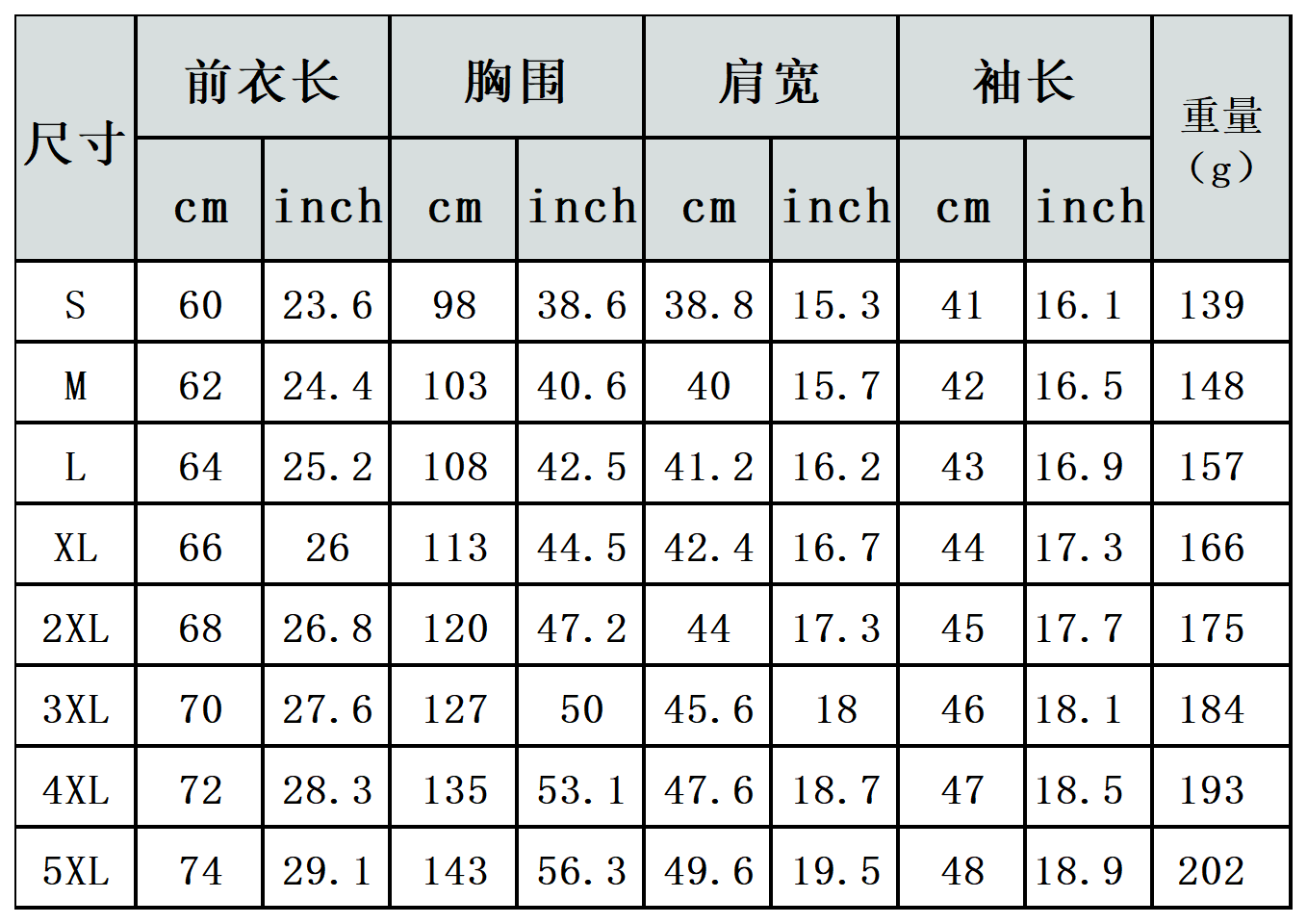 【特别说明】此尺码数据在衣服平铺下测量所得,因测量方法不同,误差在1-3cm内的属于正常现象
