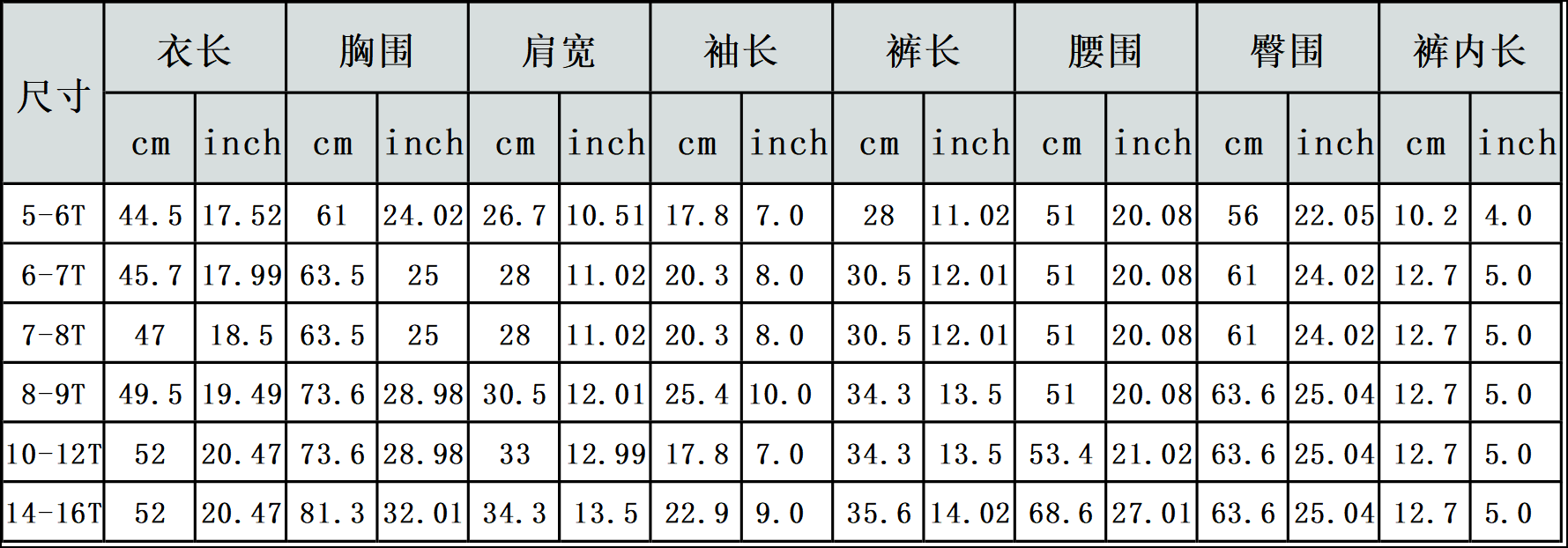 【特别说明】此尺码数据在衣服平铺下测量所得,因测量方法不同,误差在1-3cm内的属于正常现象