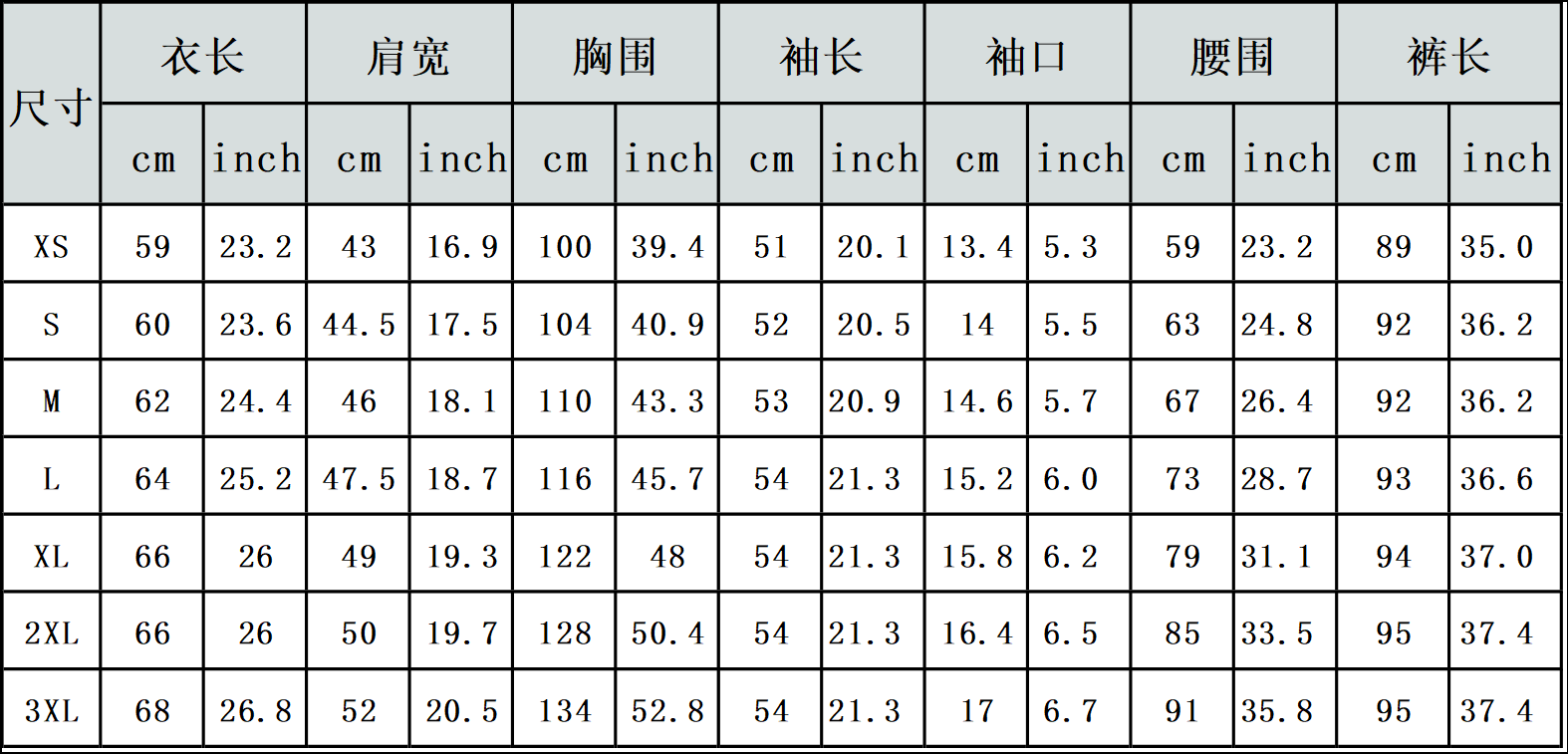 【特别说明】此尺码数据在衣服平铺下测量所得,因测量方法不同,误差在1-3cm内的属于正常现象