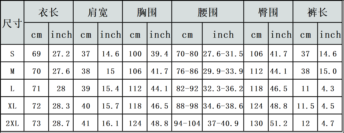 【特别说明】此尺码数据在衣服平铺下测量所得,因测量方法不同,误差在1-3cm内的属于正常现象