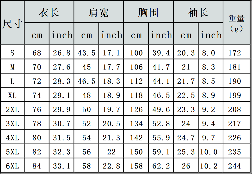 【特别说明】此尺码数据在衣服平铺下测量所得,因测量方法不同,误差在1-3cm内的属于正常现象
